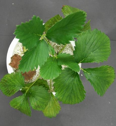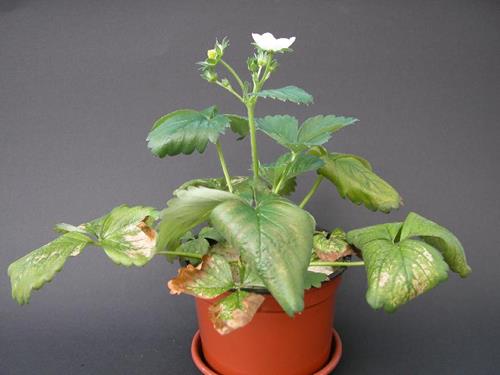 Symptome werden mit fortschreitendem Mangel und Blattalter immer stärker. Am Ende werden die alten Blätter braun während die jungen Blätter ohne Symptome sind.