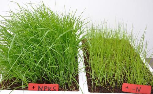 Ähnliche Symptome wie bei Stickstoffmangel sind bei Schwefelmangel zu beobachten. Allerdings beginnen S-Mangel-Chlorosen stets an den jüngeren Blättern, weil S in der Pflanze immobiler ist als N und bei Bedarf nicht von den älteren Blättern in die jüngeren verlagert wird.