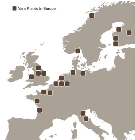 Le Havre in Frankreich, Brunsbüttel und Rostock in Deutschland, Tertre in Belgien, Sluiskil in den Niederlanden, Ravenna in Italien und Porsgrunn und Glomfjord in Norwegen, um nur einige zu nennen. Die Yara-Werke laufen rund um die Uhr, 7 Tage pro Woche. Nur gelegentlich wird der Betrieb zu Wartungszwecken oder zur Anlagenaufrüstung unterbrochen. In den großen Lagerräumen wird ausreichend Produktvorrat gelagert, um eine unterbrechungsfreie Auslieferung zu gewährleisten und Nachfrageschwankungen auszugleichen.