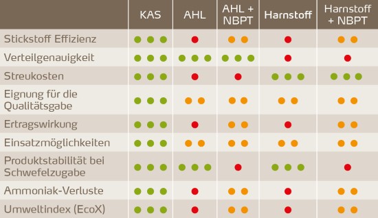 Ureaseinhibitoren reduzieren die Ammoniakverluste, die bei harnstoffbasierten Düngemitteln auftritt. Wenn für die N-Düngung nur Harnstoff oder AHL zur Auswahl stehen, lassen sich durch Ureaseinhibitoren deshalb die Umweltauswirkungen und die agrarökonomischen Ergebnisse verbessern. In Sachen Streugenauigkeit, Wirkungssicherheit und Umweltverträglichkeit gelten Nitratdünger jedoch nach wie vor als der Maßstab.