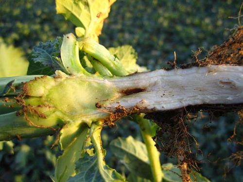 In Stängeln und Strünken treten Risse und hohle Stellen auf.