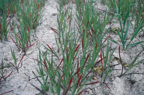 Vor allem bei Sommergetreide kann es im Frühjahr auch zur rotvioletten Färbung der Blätter durch Kälte kommen. Wurzel- oder Stängelbeschädigungen sowie mangelnde Bodenverfestigung können ebenfalls ähnliche Symptome hervorrufen.