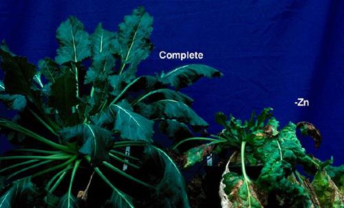Zinkmangel. Zn-Mangel tritt bei Zuckerrüben nur selten auf.