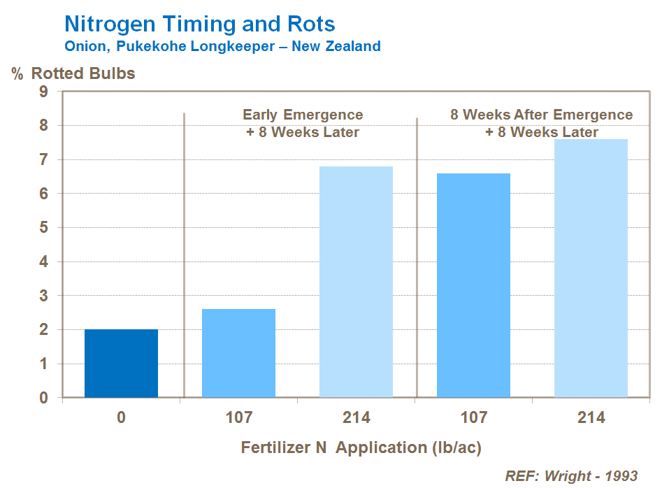 Trockene Zwiebeln benötigen eine Reife- oder Trocknungszeit, um die Schale ausreichend zu versiegeln. Zu dicke Hälse beeinträchtigen die Lagerqualität und die Gesundheit der Ernte. Eine ausgewogene Ernährung der Pflanzen ist wichtig, um die Dicke des Zwiebelhalses zu verringern.