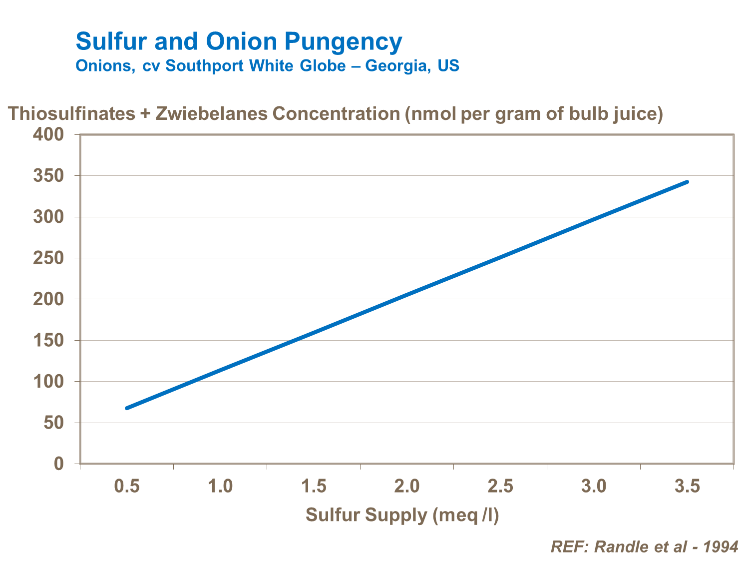 Because sulfur has a marked effect on onion pungency and sugar content, it is important to exploit the right soil and use an appropriate rate and timing of sulfur that satisfies market requirements and tastes.